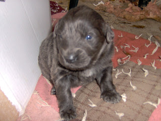 Aren't they cute? We have tagged the one in the dogbowl "Boots" and he seems to make his way into a lot of the pictures. The puppies will definitely be used to children! Those girls are all over them all the time. They treat them like babies and actually rock them to sleep! We have 8 girls and 2 boys. (puppies, that is!) They range in colors from black, black and white, black and tan, gray/silver, to even one blond. Some have short hair like the mother and some have long hair like the father. Now to find some homes! All my local readers, HELP ME OUT! :o)